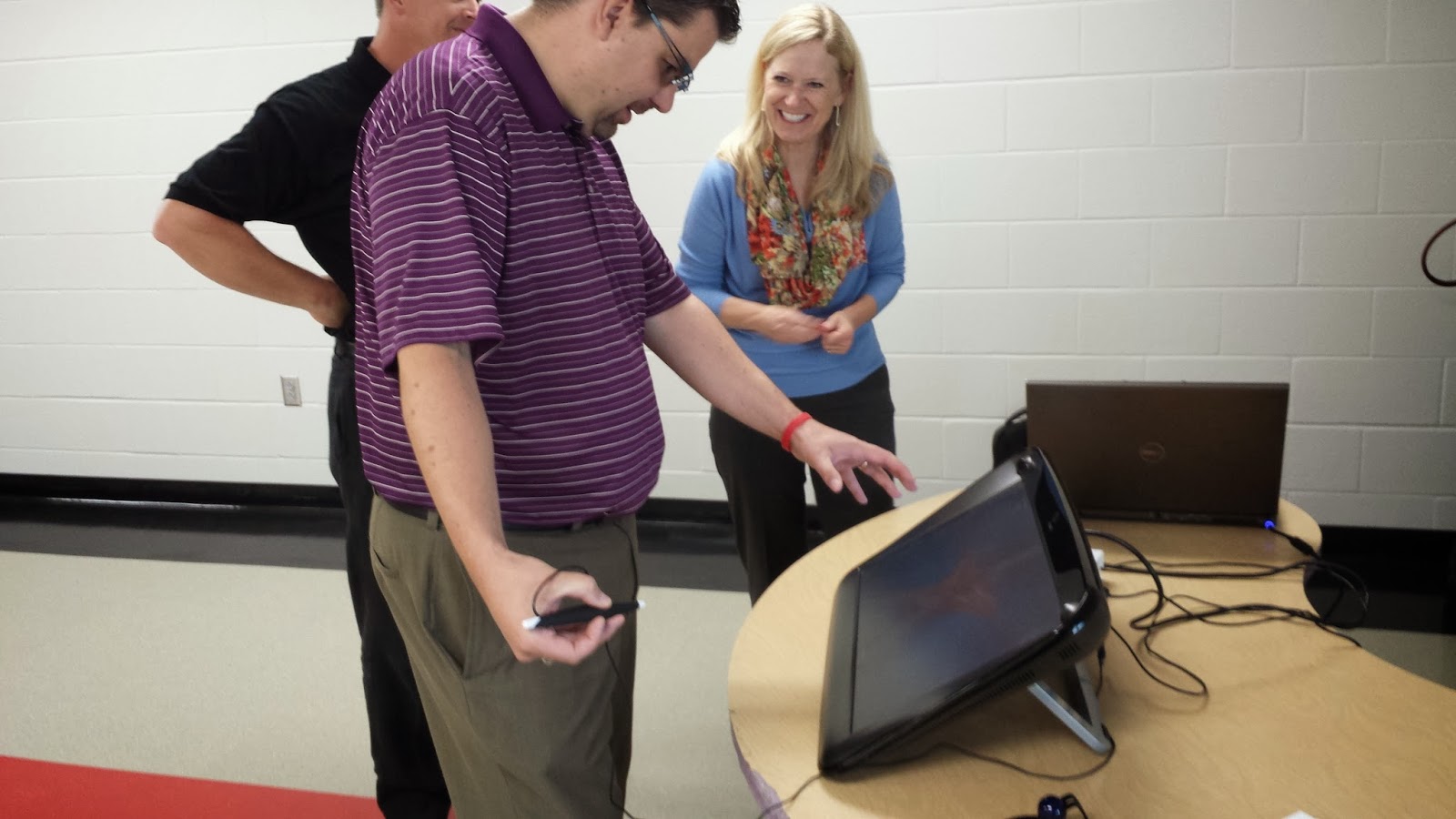 | Superintendent, Joel Pedersen trying out the technology. |